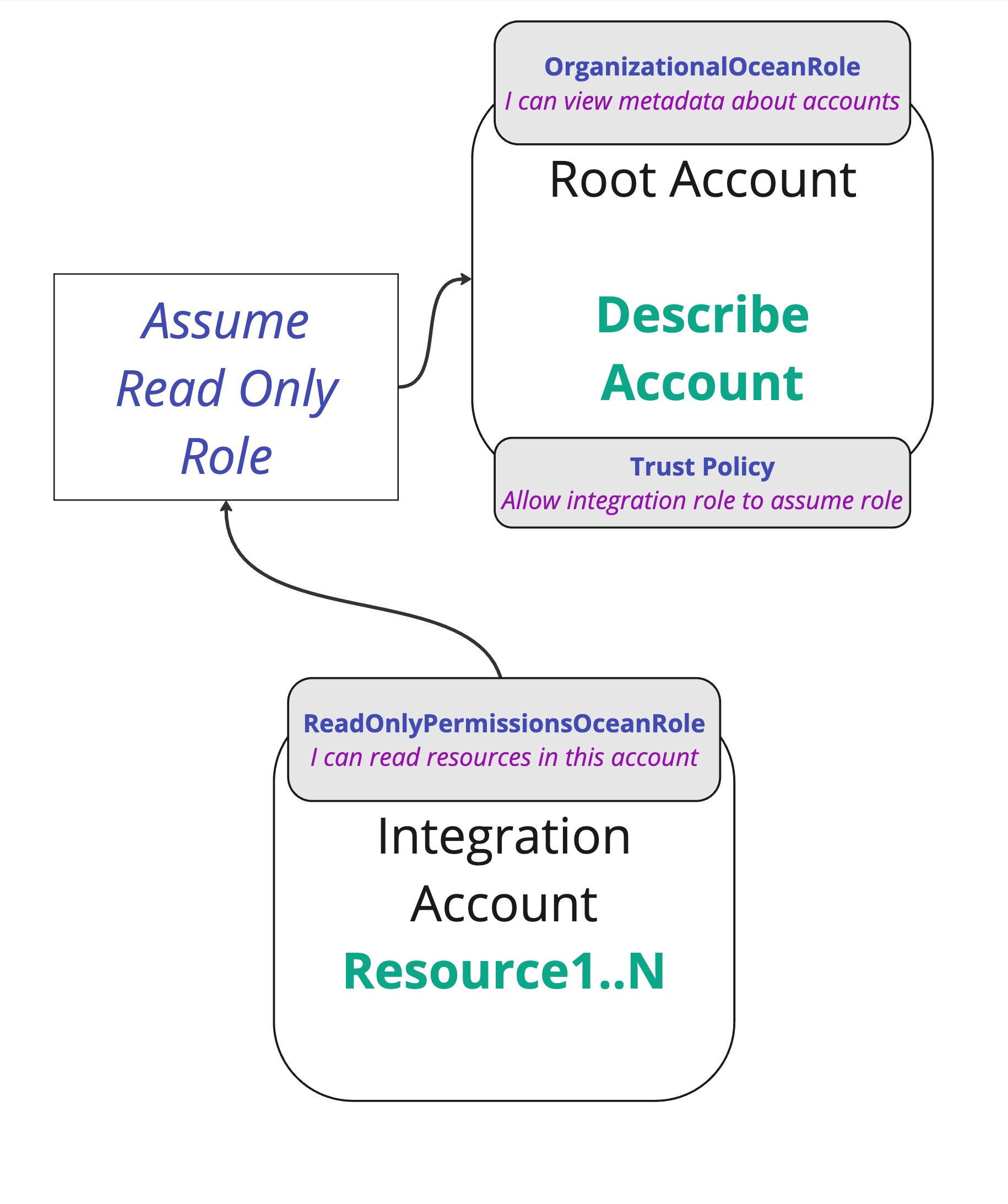 Then, In order for the integration's role to get accounts metadata, We'll need to give our integration role, ReadOnlyPermissionsOceanRole