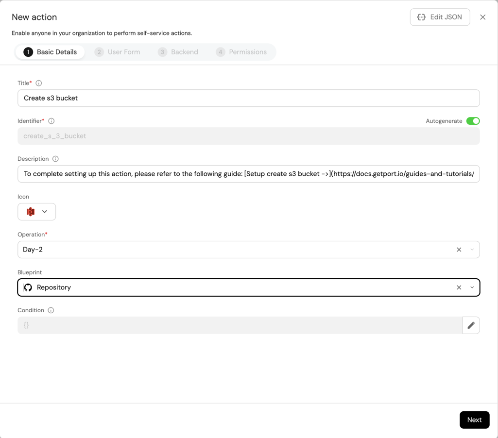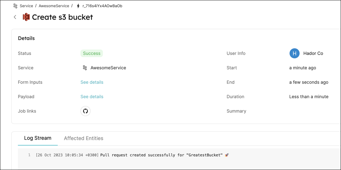 All done! You can now create resources for your services directly from Port ๐ช๐ฝ