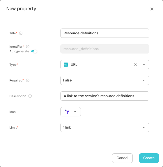 To enable tracking of cloud resource definitions in Port, we'll add a new URL property to the existing Repository