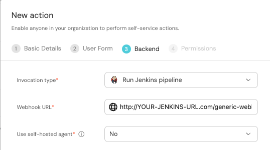 Now we'll define the backend of the action. Port supports multiple invocation types, depending on the Git provider you are using.