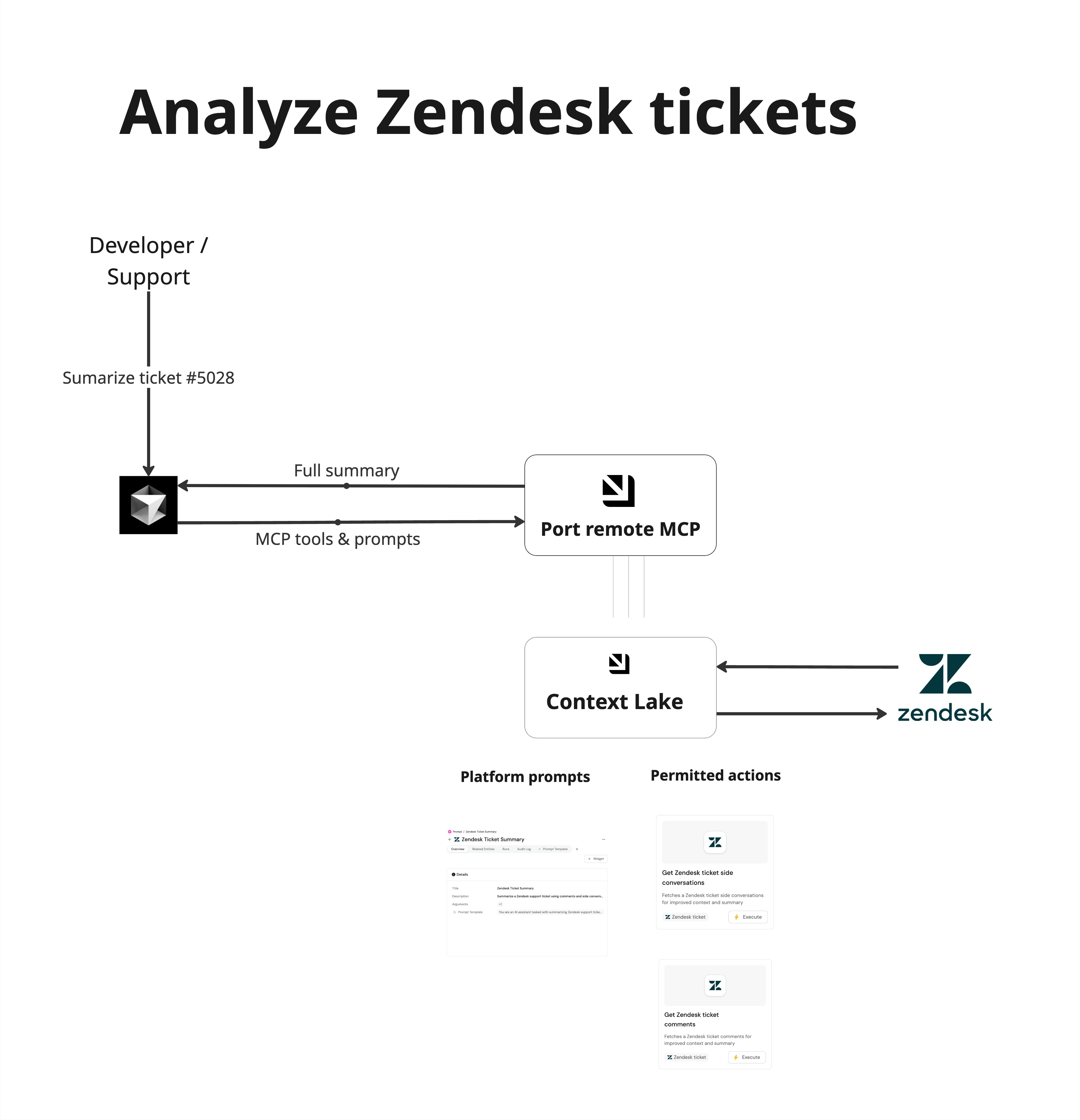 In this guide, we will set up a prompt in Port so that any AI tool that supports the prompt feature of the MCP protocol can help you summarize Zendesk tickets with all the relevant context.