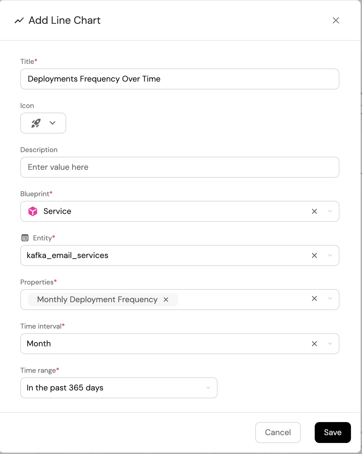 - Name the dashboard (e.g., DORA Metrics), choose an icon if desired, and click